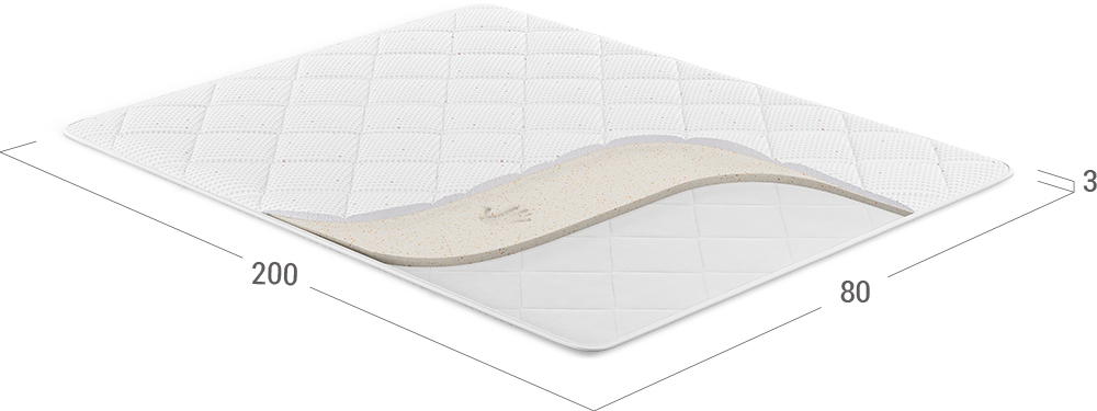 Этот тонкий беспружинный матрас высотой 3 см не только скорректирует несовершенства спального места, но и защитит его поверхность от загрязнений.