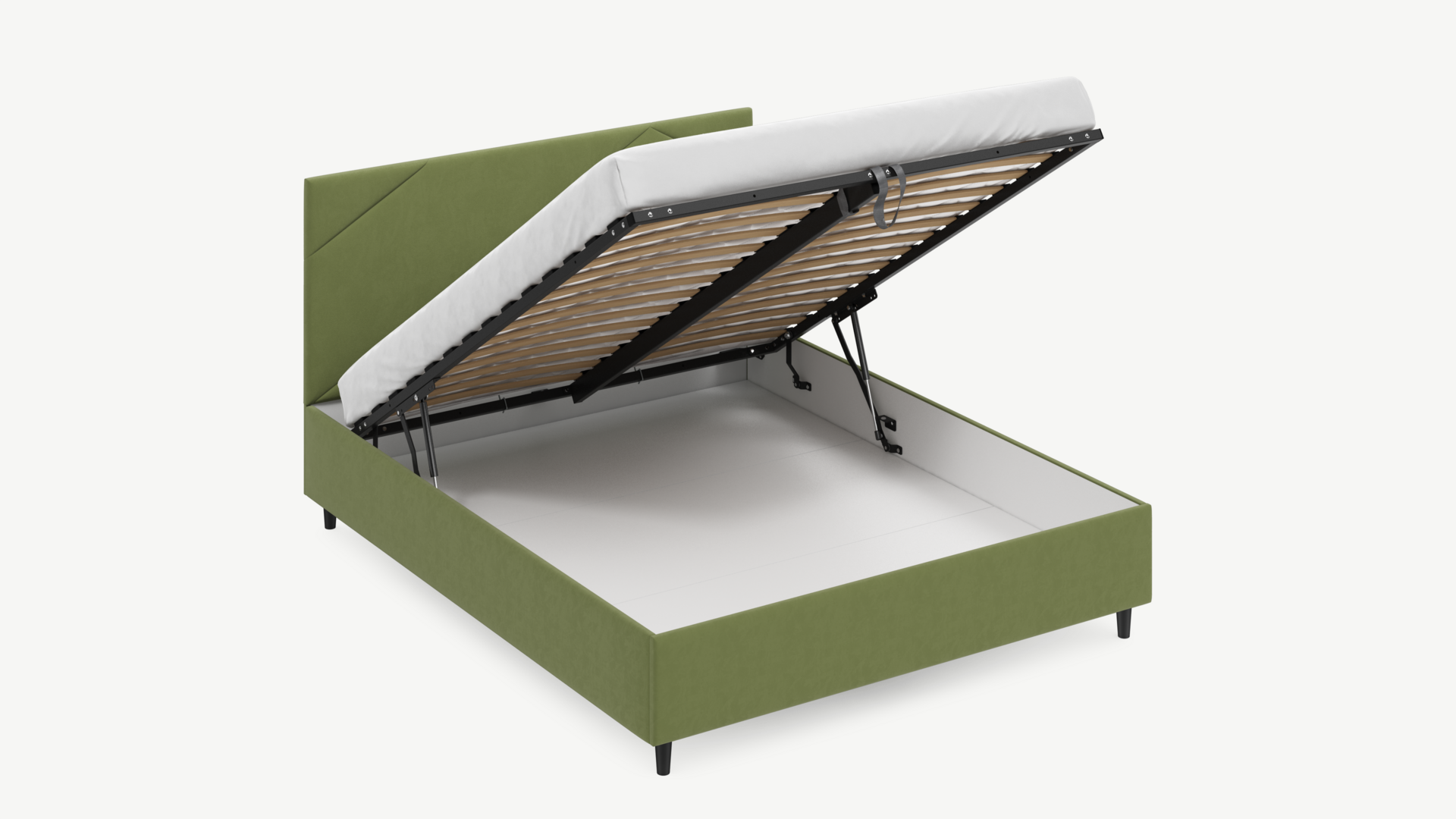 • Скрытая под основанием вместительная емкость без внутренних перегородок позволяет использовать всю площадь подкроватного пространства для хранения вещей.